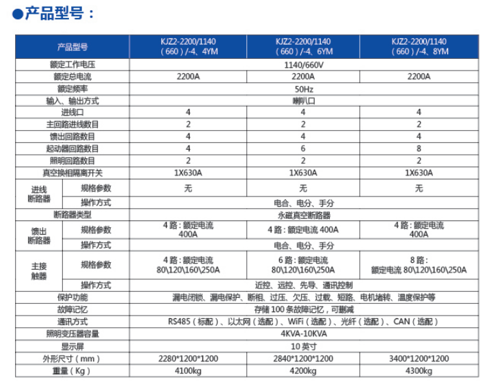 功能全é¢:具有æ¼ç”µé—é”ã€æ¼ç”µè·³é—¸ã€é€‰æ‹©æ€§æ¼ç”µã€ç½‘络型光纤防越级跳闸ç‰åŠŸèƒ½;具备电动摇进摇出ã€è§†é¢‘监控ã€å®žæ—¶æµ‹æ¸©ã€æ™ºèƒ½é™¤æ¹¿ã€é˜²è¶Šçº§è·³é—¸ã€è¿œç¨‹æŠ„表ç‰åŠŸèƒ½,é…ç½®10寸工业级液晶工控å±,å¯é€‚é…â€œçŸ¿é¸¿â€æ“作系统,满足智慧矿山建设需求;